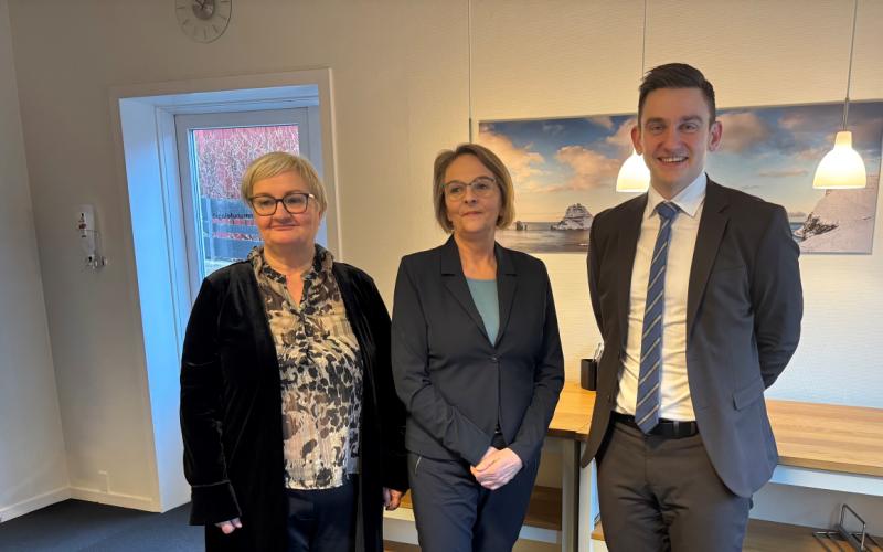 Formaðurin í Kommunala Arbeiðsgevarafelagnum, Per Martin Gregersen og landstýriskvinnan í Fíggjarmálaráðnum, Ruth Vang luttóku á samráðingarfundinum við Heilsurøktarafelagið í gjár. Tríggir fundir hava verið millum partarnar og nýggjur fundur er avtalaður fríggjadagin 14. februar 2024.
